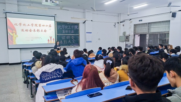 11月25日,化学化工学院举办第40届秋季运动会表彰大会,对运动会期间表现突出的运动员和工作人员进行表彰。化学化工学院党委副书记鲍青燕、全体辅导员、全体运动员及志愿者代表出参加大会。