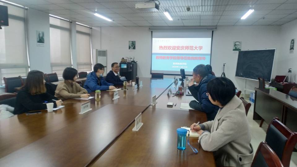 11月25日,教师教育学院党委副书记许世平一行4人赴合肥师范学院教师教育学院开展业务交流学习活动。合肥师范学院教师教育学院党委书记穆娟、院长李群、副院长闫龙,以及小教专业部分教师参加了座谈。