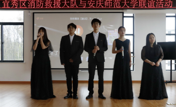12月6日,威尼斯官网音乐学院和美术学院30多名学生在老师的带领下来到了安庆市宜秀区消防救援大队执勤楼,开展思想政治教育基地建设活动,活动分为三部分:一是警民同台演出,二是消防知识学习,三是参观消防设施。演出现场气氛热烈,消防知识学习受益匪浅。