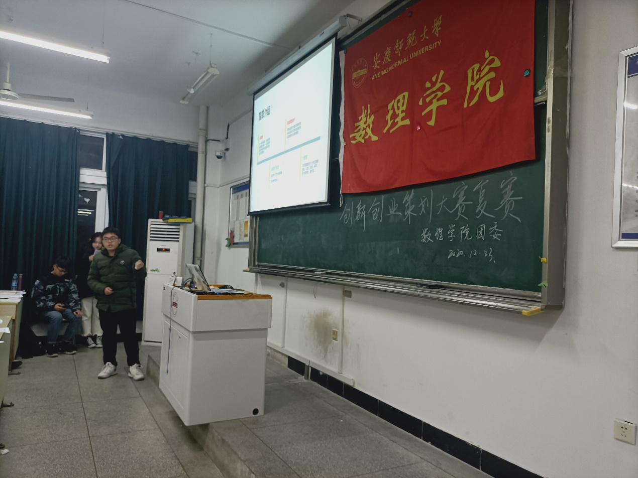 为贯彻落实国家关于深化高等学校创新创业教育改革的相关文件精神,12月23日,由数理学院团委主办的创新创业比赛第一轮复赛在教学楼B303如期举行,第一轮复赛共有十支双创团队参加。学院团委负责人、20级新生辅导员及相关教师担任本次比赛评委。