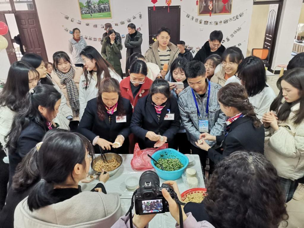 “这不是第一次举办此类活动,今年我们增加了宿管阿姨教学生包饺子环节以及包饺子比赛。”活动负责人广播电视学专业2019(2)班的谢紫颜介绍,他们在一个月前就开始策划活动,包括活动场地的布置以及物品的购买等。谈及选择“包饺子”这一形式的原因,她说:“这既能让大家参与到劳动中来,又十分有趣,很好地活跃了气氛。”
