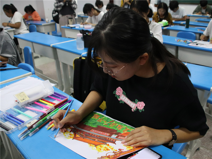 “初赛时,我的作品主题是军训,我把自己的亲身经历画进了作品里,也是为了纪念大学生活的第一站。”她说,通过参加这个迎新书画大赛,既认识了很多新朋友,也看到了自己的不足,在以后的学习生活中,会不断向优秀的人学习,不断提升自身能力。
