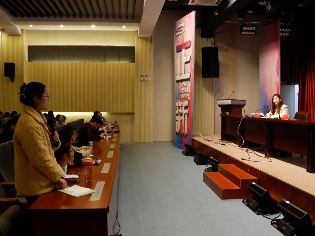 在经验分享过后,十几位学生积极参与互动,先后向徐雁珊提出问题,从日常学习到考研技巧,从教师招聘到其它就业选择,涉及了生活、学习的各个方面。对于这些问题,徐雁珊都耐心地进行了回答,不仅为学生们提供了就业建议,还避开了有关选择的“雷区”。