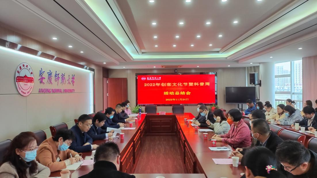 11月24日,校团委举行2022年创客文化节暨科普周活动总结会。校团委书记汪洋,电子工程与智能制造学院党委书记夏云高,池州华宇电子科技股份有限公司人力资源部经理薛东红、项目部经理刘中洁,相关学院分管科研工作负责人,各学院团委负责人参加会议。会议由大别山区域发展研究院(安庆发展研究院)副院长黄光锋主持。