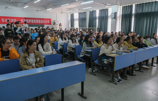 4月18日上午,大学生校友交流发展协会于文溯楼208教室开展“校友开讲啦”活动,该活动邀请威尼斯官网优秀校友、马克思主义学院辅导员田梦甜分享了大学生的学业就业规划,近200人参加了此次活动。
