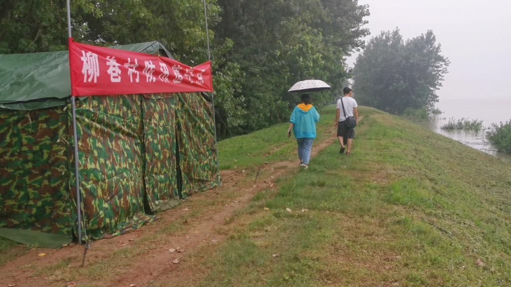 汛情严重期间,队员殷雪和杨紫君冒雨前往柳巷镇防汛值守点观察记录淮河水位情况,泥泞崎岖的土坝,即使泥土沾满双脚、鞋子破损,也没有阻挡她们前往一线的脚步。