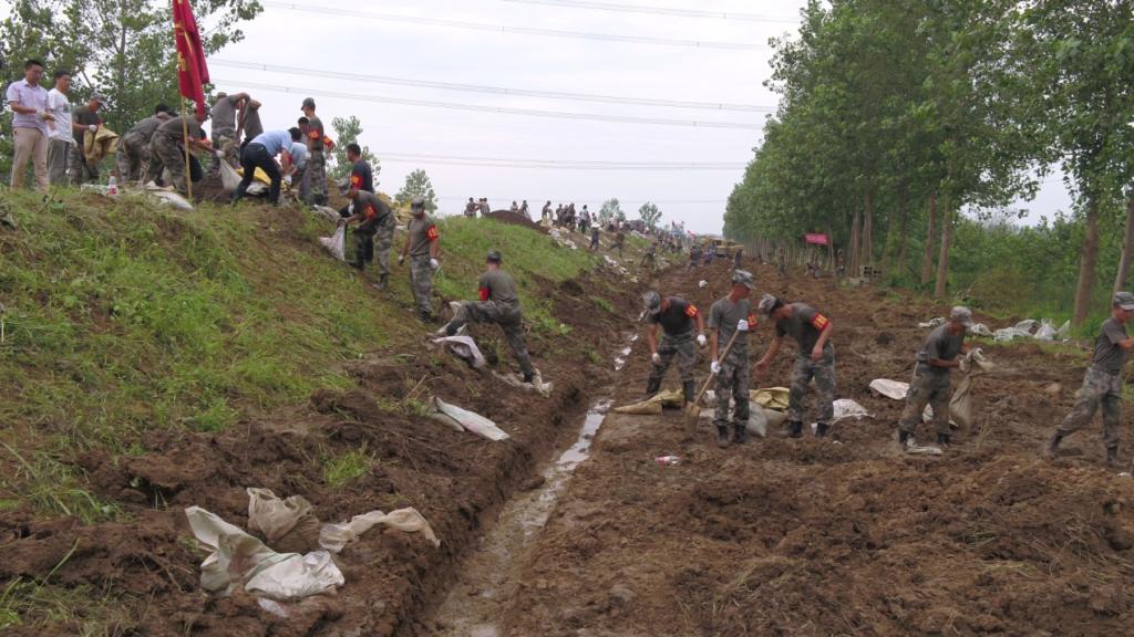 当洪水入侵明光女山湖老街时,她们跟随数百名人民子弟兵来到女山湖安淮圩堤坝抗洪现场,记录下他们抢险救援、紧急铺设沙石滤水层的画面。