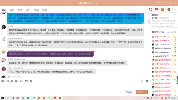 “学党史,强信念,跟党走”主题云团课。5月4日,学院团委委员和37个基层团支部全体团员集中观看了由团中央、全国学联共同发起的共聚“学党史,强信念,跟党走”主题云团课,团课通过多样的、生动的形式,讲解党史发展脉络,讲清楚中国共产党为什么能、马克思主义为什么行、中国特色社会主义为什么好等重大问题,为团员青年打造了一场特别的青春盛宴。当天,共有1600余人次在线参与。学习完毕,各团支部成员结合自身实际,踊跃分享学习习近平总书记重要讲话和党史学习教育对自己成长发展的意义和收获。2019级物联网工程专业陈静同学认为:“我们要充分利用课余时间,提高政治理论素养,向榜样看齐,确立理想目标,脚踏实地奋斗,练就过硬本应,做一名优秀的青年大学生,为实现中华民族伟大复兴中国梦贡献自己的一份力量。”