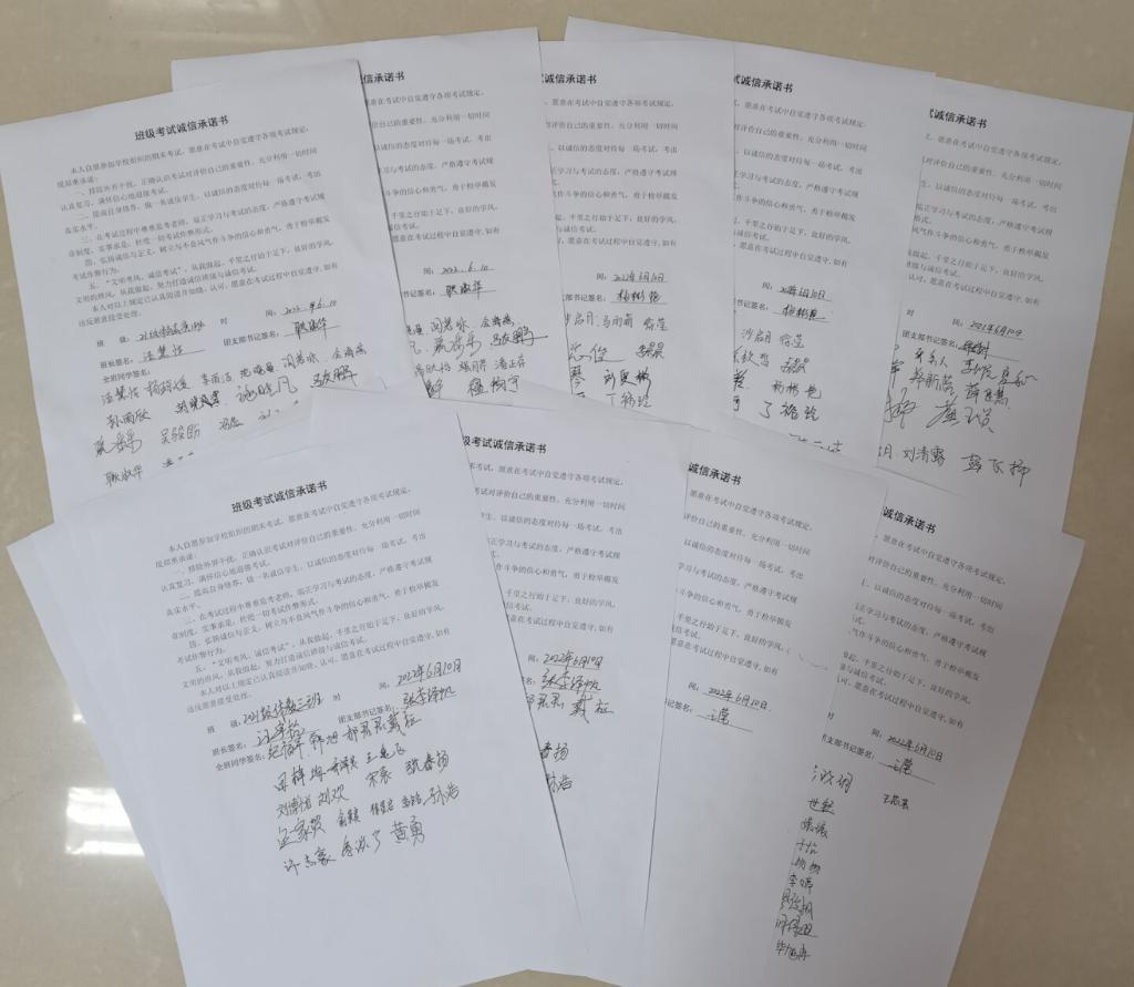 学院以“讲诚信、说诚信、做诚信”为主线,开展集体诚信宣誓活动,各班集体宣读并签订诚信承诺书,郑重承诺做诚实守信大学生,积极引导学生做诚实守信、立志立德的新时代大学生,激励学生将诚信内化于心、外化于行,切实做到诚实守信的宣传者和践行者。