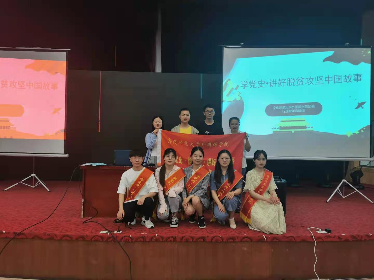 “带着母亲去扶贫”“大学生村官的驻村‘七年’”“第一书记邱宏瀛:心里装着乡亲们的致富梦”……伴随着台上宣讲人的讲述,大屏幕上呈现出一张张照片、一个个村落、一段段故事,台下听众全神贯注地听着,被一个个鲜为人知却又感动人心的脱贫故事所吸引。自4月6日起,外国语学院“倾听者”团队开展“学党史 讲好脱贫攻坚中国故事”系列主题宣讲活动,前后于校内校外共宣讲8场,讲述60个真实脱贫故事。