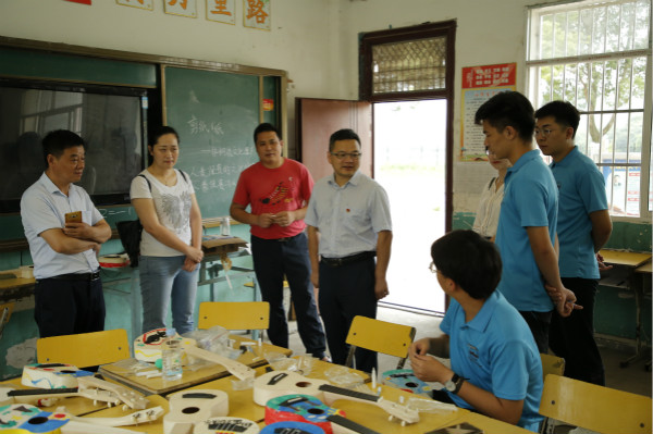 7月16日,校团委书记陈东一行前往宜秀区罗岭中心学校看望国家级三下乡团队“艺路同行”实践服务团,并送去慰问品,罗岭镇党委委员韩敏、罗岭中心学校校长刘真理、特级教师龙鹏飞热情接待了陈东一行。