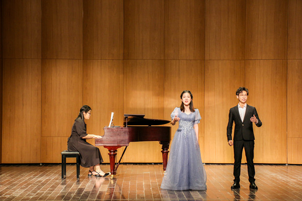 男生四重唱《一丛山茶花》以铿锵的嗓音唱出了边疆战士守卫国土的坚定信念;表演者以精湛的唱功演唱《歌》,表现出了诗歌的“张力”;朝鲜民歌《美好生活在祖国》以悠扬嘹亮的嗓音展现了人民对祖国的美好未来的期待与向往;四人合唱《祖国万岁》,以嘹亮的歌声震撼人心、催人奋进。古风韵味的经典诗词、富含异域风情的民歌、激情四射的二重唱表演……学生们声情并茂地演绎风格各异的曲目,富有感染力的歌声不时回荡在音乐厅内。