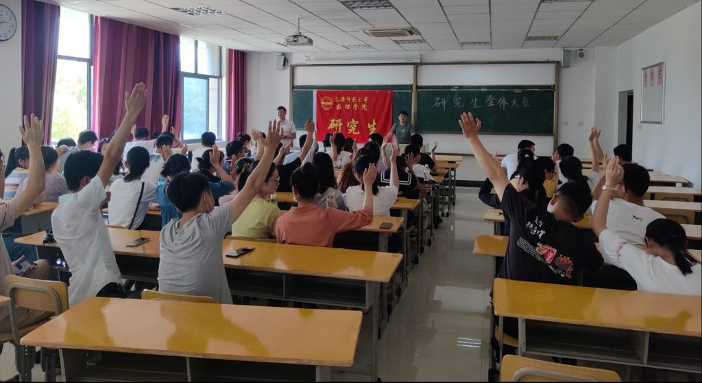 6月9日,数理学院第一次全体研究生大会在I楼204教室召开。学院党委副书记何骏、团委负责老师、研究生辅导员及全体研究生参加了此次会议。大会在庄严的国歌中拉开序幕,主持人致开幕词并宣读大会议程。
