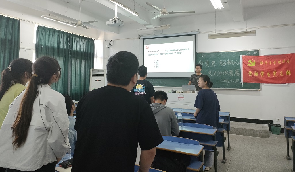 为深入学习贯彻习近平总书记在党史学习教育动员大会上的重要讲话精神,扎实推进党史学习教育走深走实,6月9日,经济与管理学院金融学生党支部在文溯楼505教室开展“学党史 忆初心”主题党日活动,活动由支部书记洪春燕主持。