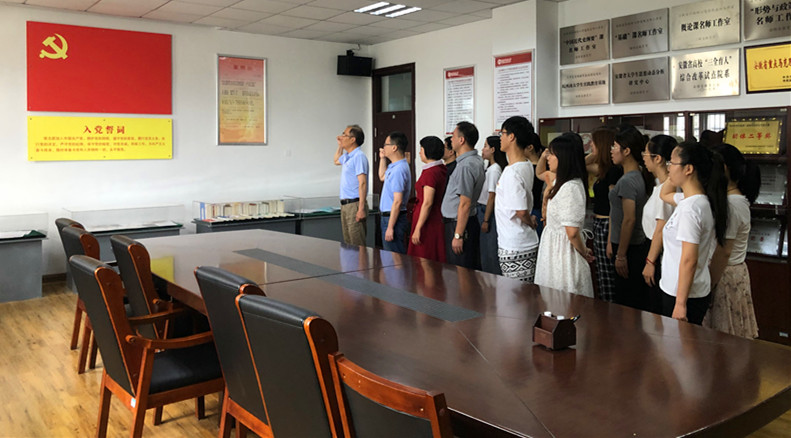 直播观看结束后,金文斌带领部分师生党员,重温了入党誓词。