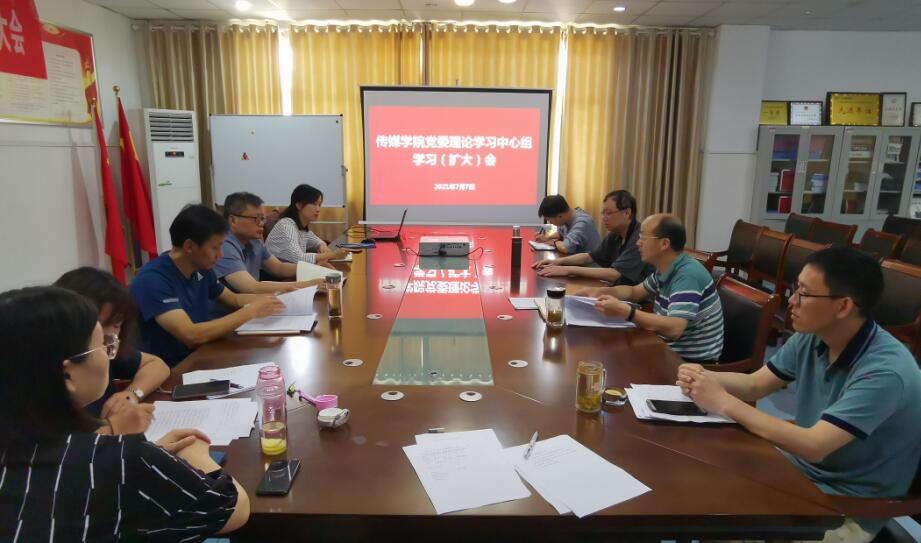 7月7日,传媒学院召开党委理论学习中心组学习(扩大)会,学院党委委员、纪委委员、科级干部和各党支部书记参加学习。会议由学院党委书记韦长发主持。