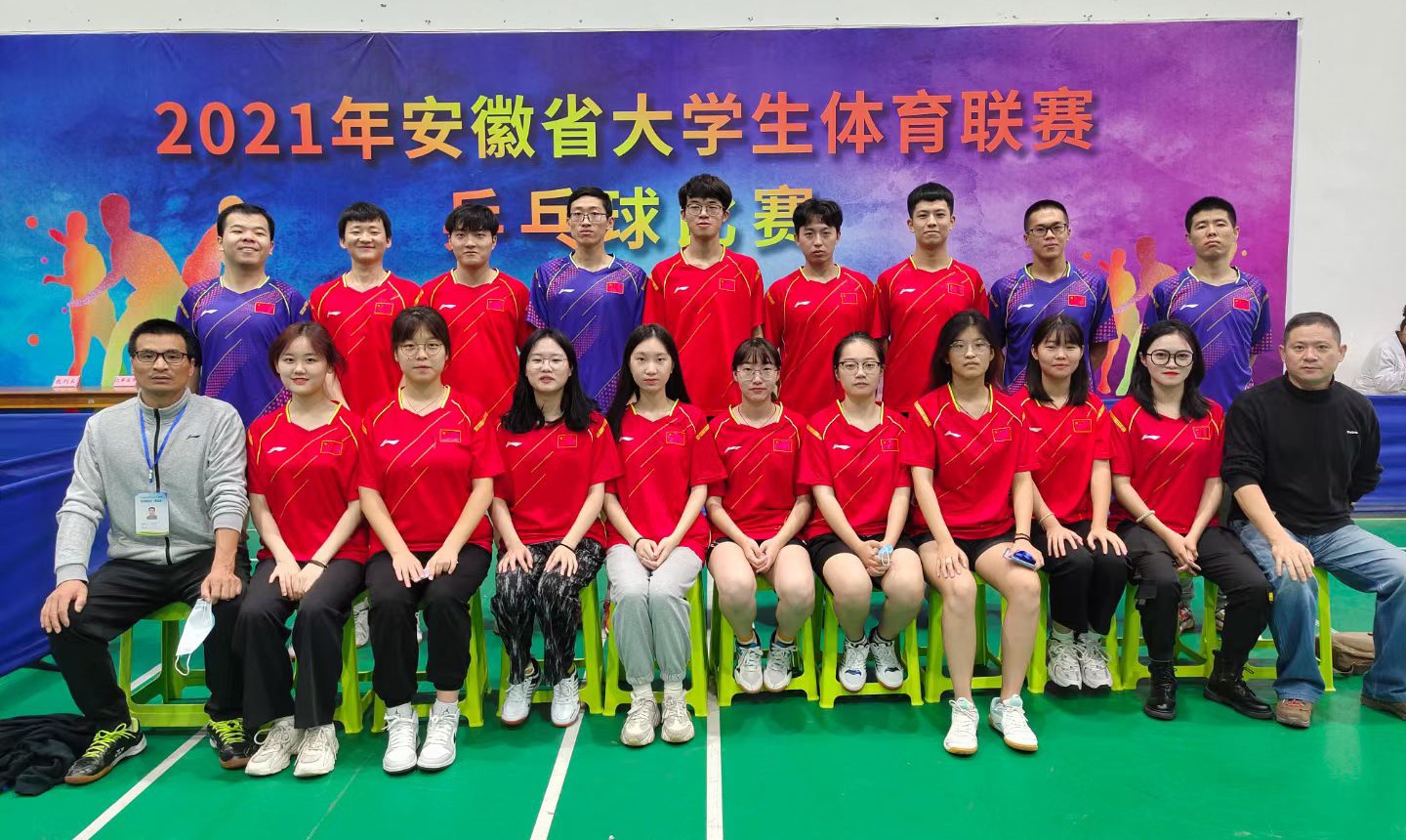 10月31日至11月7日, 2021年安徽省大学生体育联赛乒乓球比赛在淮南师范学院小球馆举行,威尼斯官网代表队分别参加了甲组和丙组的比赛。