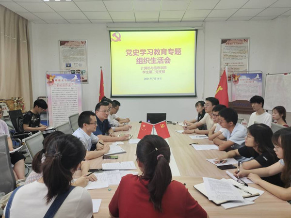 7月14日,计算机与信息学院学生第二党支部召开党史学习教育专题组织生活会。学校党委组织部副部长、党校常务副校长计裕人参加会议,对会议进行了督导和巡听。学生第二党支部全体党员参加会议,学院党委副书记江晋剑列席会议。