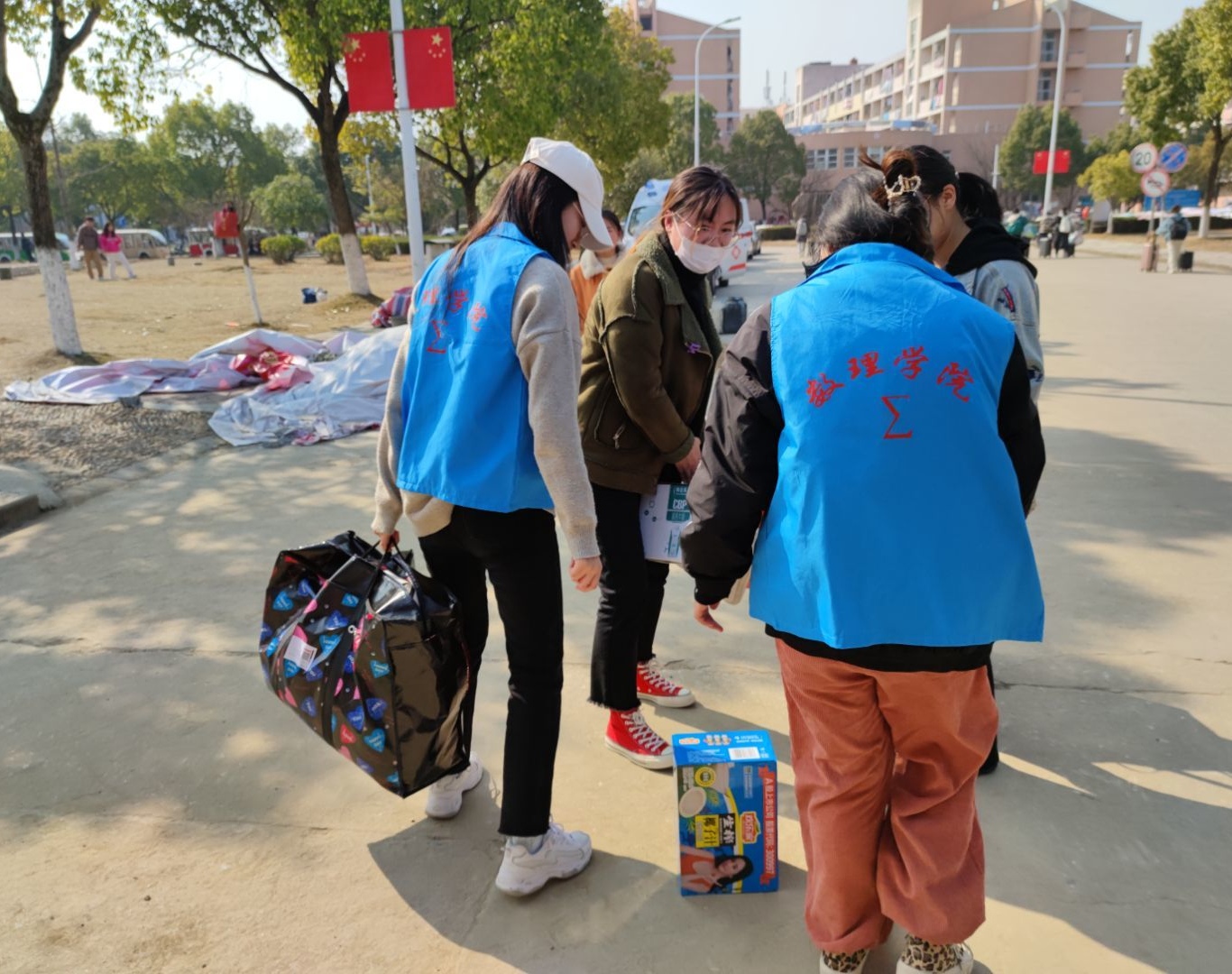 在数理学院、校学生处的统一安排下,上午九点,党员同志们身穿志愿服,并组成志愿小分队前往学校东门和南门,协助学校审核检查报道学生的信息和健康码、行程码。遇到携带大量行李的同学,党员同志们主动帮助他们看守和运送行李,耐心指导在报道过程中遇到各种问题的同学,帮助学生快速顺利完成报道。活动最后,党员同志们在东门合影留念。