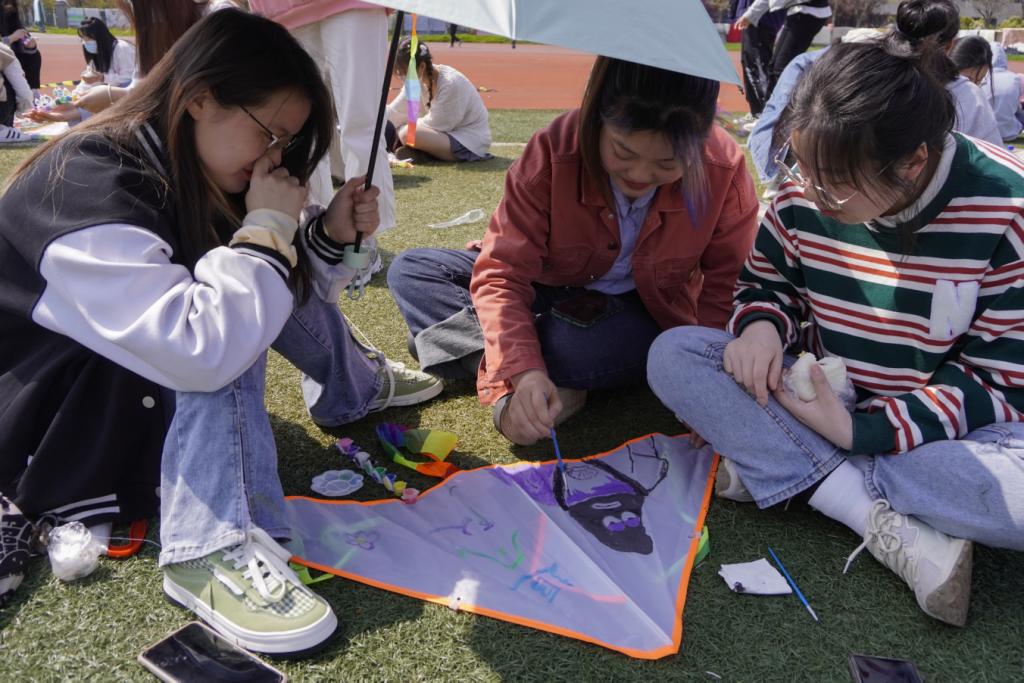 海绵宝宝系列卡通、宿舍人物自画像、春日氛围小红花......4月3日,传媒学院的170余名学生“集结”东门操场,他们手握画笔,心系蓝天,定制着专属风筝,“沉浸式”的风筝体验券让学生们直呼“过瘾”!