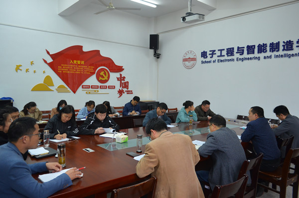 5月9日,电子工程与智能制造学院召开全面从严治党暨安全稳定工作会议。全体院党政班子成员、纪委委员、各办公室负责人、党支部书记和全体专兼职辅导员参加会议,会议由该院党委书记夏云高主持。