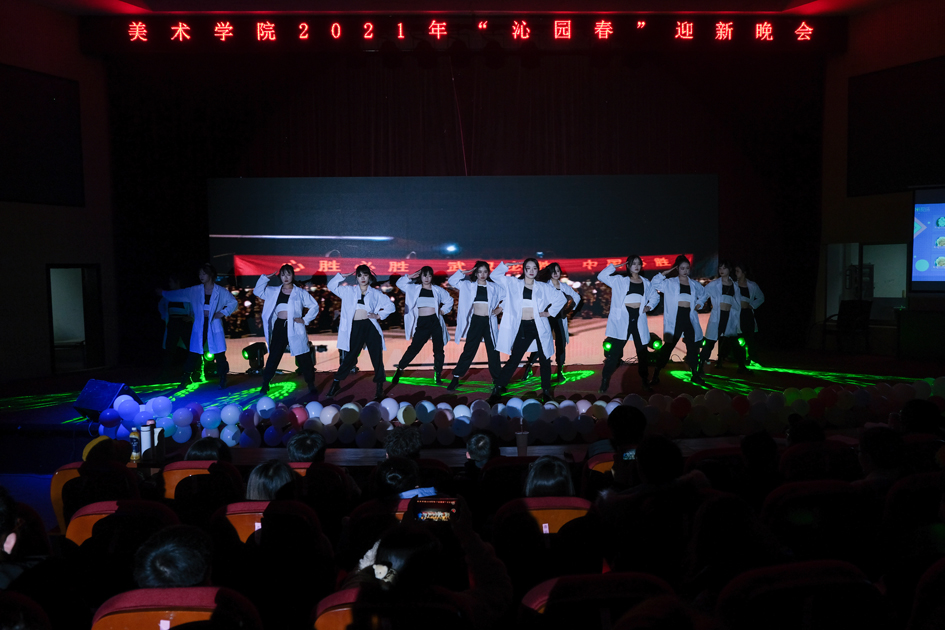 “新的一年即将来临,祝大家新年快乐……”12月27日,美术学院于图书馆东报告厅举办2021年“沁园春”迎新晚会,晚会在学院准备的新春祝福视频中拉开帷幕。美术学院党委副书记查国平等老师及学院学生400余人参加了此次晚会。