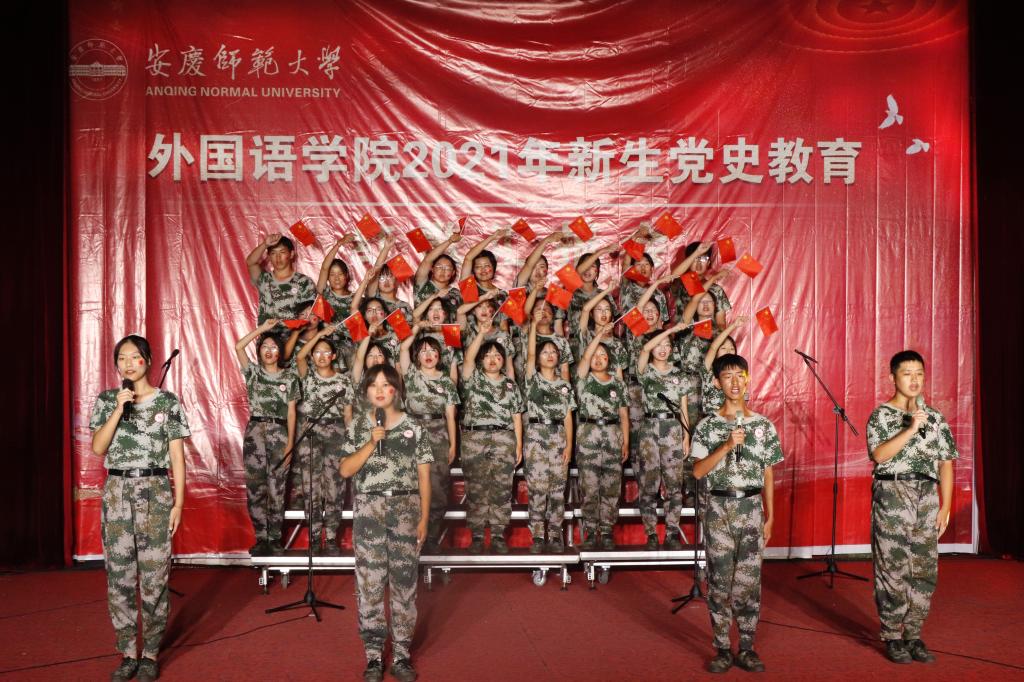 “是党!带领民众推翻了压在中国人民头上的三座大山!是党!率领人民走向具有中国特色的社会主义流光大道……”铿锵的声音、高亢的音乐和此起彼伏的掌声,回响在图书馆东厅。9月27日晚,外国语学院举行2021级新生开学典礼暨新生党史教育红歌汇报会,为新生们上了一堂别开生面的入学教育。13个新生班级共386人登台献唱,将13首红歌献给党,学院党委书记李亦亮、院长王先荣、副院长江加宏等领导老师出席。