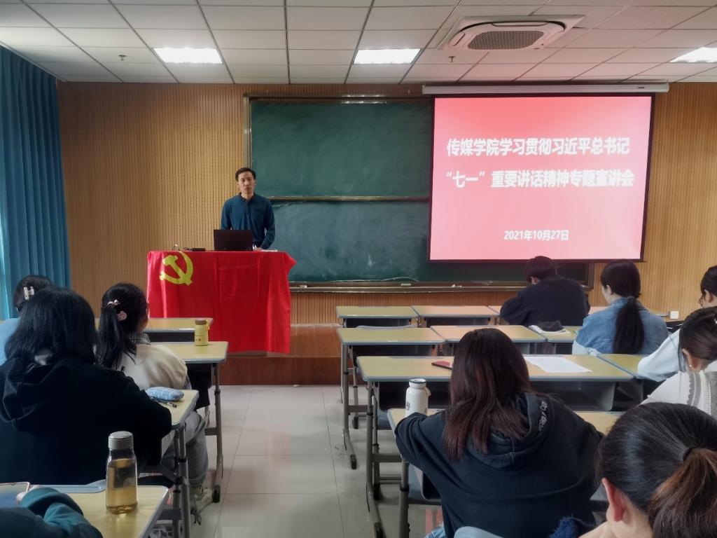 10月27日,传媒学院在K517教室举办学习贯彻习近平总书记“七一”重要讲话精神专题宣讲会。学院党委副书记张万茂为全体学生党员做专题宣讲报告。