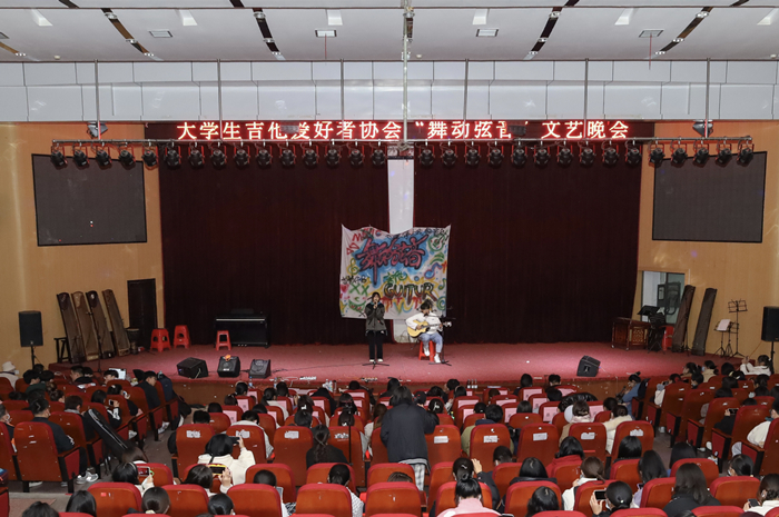 “大学生吉他爱好者协会为广大热爱流行音乐的学生提供了一个非常好的平台,同时也汇聚了众多具有相同爱好的学生一起交流学习乐器。”协会指导老师李宗旺表示。此外,大学生吉他爱好者协会还在每周五面向学生开设免费的大班吉他演奏课程,鼓励更多热爱音乐的人培养自我兴趣爱好。(撰稿:学生记者 李雪婷 摄影:学生记者 黄藻龙 审核:钱敏)