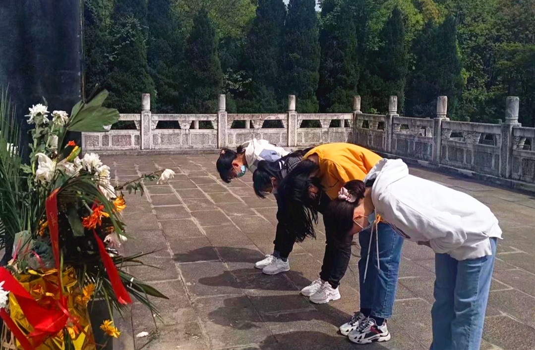 在《新青年》碑刻前驻足、于陈独秀铜像下瞻仰、向陈独秀墓冢鞠躬……学前教育专业2020(3)班学生金静静在独秀园内由衷地做出这些举动,像她一样参观独秀园的还有大学生书画协会的其他成员。近日,大学生书画协会团支部组织会员前往独秀园开展了“青山埋忠骨,浩气永长存”主题团日活动。