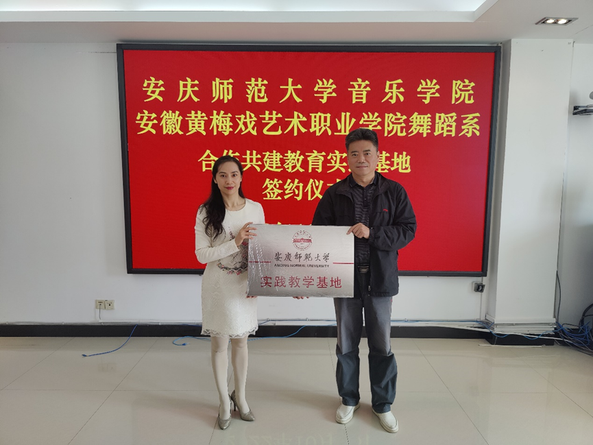 10月25日,音乐学院与安徽黄梅戏艺术职业学院舞蹈系举行舞蹈表演专业实践教学基地合作共建签约暨授牌仪式。音乐学院党委书记张铭、副院长徐冉、舞蹈专业教师代表,安徽黄梅戏艺术职业学院党委副书记、院长陈二祥及相关处室、系部负责人参加仪式。