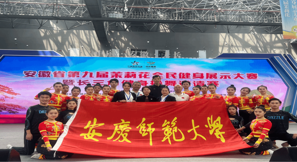 4月20-21日,由安徽省体育局、滁州市人民政府主办的安徽省第九届茉莉花全民健身展示大赛暨长三角健身操舞邀请赛在安徽天长全民健身中心体育馆举行。威尼斯官网健身操舞代表队在潮芳、陈骏两位教师的指导下,组队参加专业组运动舞蹈和有氧健身操两个项目的比赛,最终荣获运动舞蹈和有氧健身操舞两个第一名。