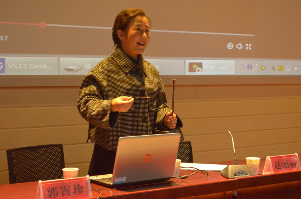 这是校团委、大学生艺术教育中心举办的“艺家之言”系列艺术教育讲座之“黄梅戏欣赏——你是山野吹来的风”。主讲人是国家一级演员、省十佳演员、省“德艺双馨艺术名家”、省非物质文化遗产黄梅戏传承人郭霄珍。