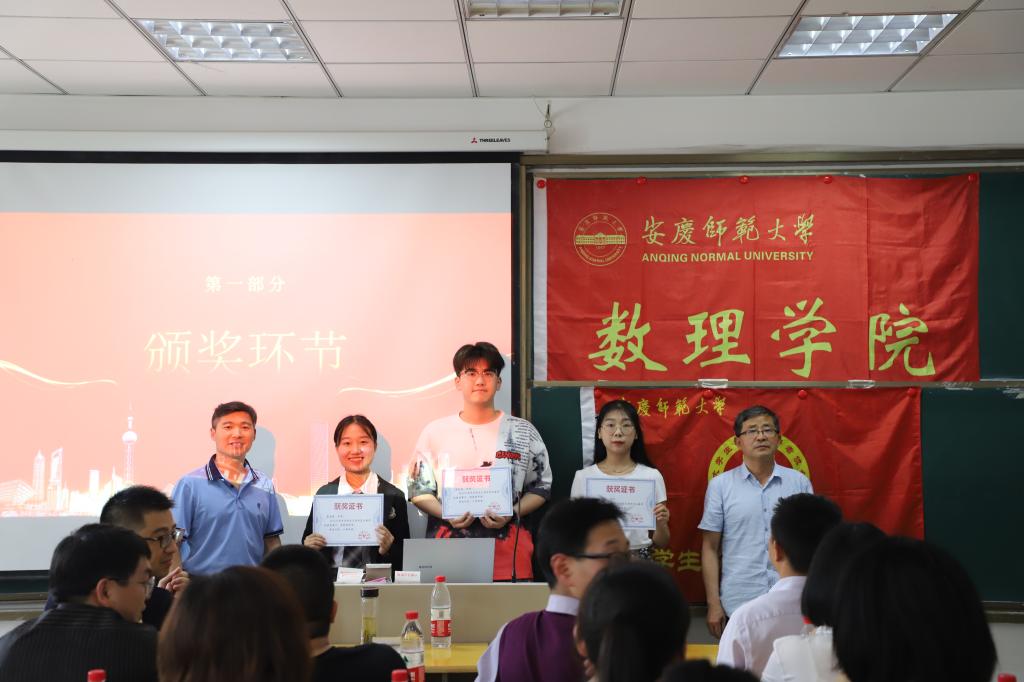 5月12日,数理学院在I楼204教室举行首届师范生技能竞赛颁奖大会。数理学院党委书记钟金标、院长申传胜、副院长张海、副书记何骏以及学院教学、团学负责人与指导老师参加颁奖,数学与应用数学、物理学两个师范专业120余名学生参加此次会议。