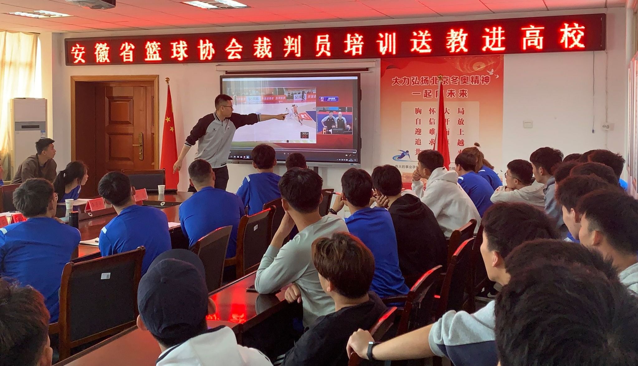 本次培训活动持续一天,培训内容有篮球规则讲解和案例视频分析、比赛临场执裁示范观摩、执裁行为规范辅导和理论考核等模块。培训过程中讲师采用讲解、示范、提问、答疑和实操等多种教学方法、方式,以加强教与学双边互动交流。本次培训活动的开展,是体育学院不断深化校企合作的又一重要举措, 为提升学生的实践应用能力,切实有效推进人才培养模式改革、推进安徽省裁判员队伍梯队建设和培养高水平篮球裁判员打下了坚实基础。(撰稿、摄影:贾恩峰 编辑:江伟 审核:林秋菊 赵丽丽)