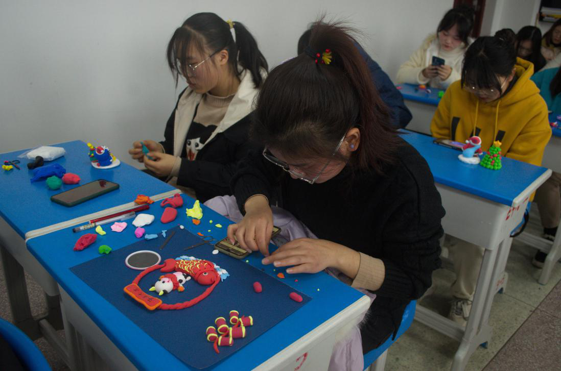 活动现场除了有参赛者的身影,还挤满了前来观看的学生。“《牛年大吉》里面有非常多的中华传统元素:锦鲤、元宝、红包......配色是大红色和金黄色,让整个作品显得十分喜庆。”化学工程与工艺专业2020级的陈文鑚表示自己从小就喜爱中华传统文化,觉得黏土与中华元素的结合非常有新意,特意来观赛。