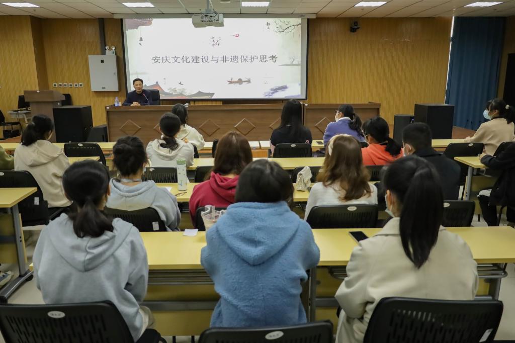 11月5日,校团委举办“艺家之言”专题讲座,安庆市文化馆副馆长、市非遗保护中心副主任陈建球应邀主讲《文化安庆建设与非遗保护思考》。