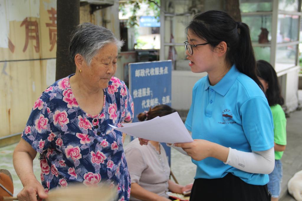 “垃圾分类是你们年轻人的事咯,我们可学不进去了。”芭茅巷社区路口坐着的老爷爷感慨道。“爷爷,很简单的,您看我们吃剩下的厨房用的垃圾大部分都叫厨余垃圾,厨余垃圾就是湿垃圾啦!”胡钊瑜听到老爷爷的感慨就热心的上前为这位爷爷解释这些新名词。“我知道了,我以后会注意的,谢谢你们”直到这位爷爷能够区分种类,这群孩子才肯罢休。