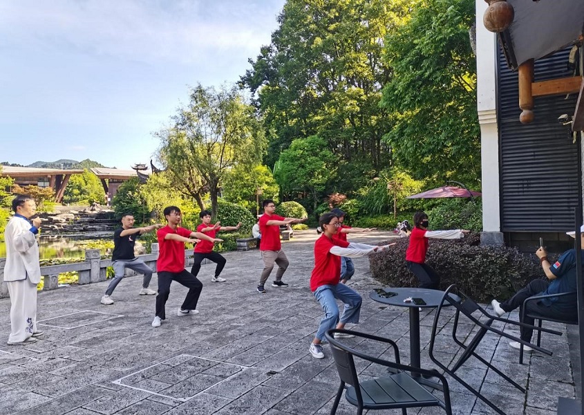 实践团的到来为齐云小镇直播间注入了青春活力,同时这次张三丰太极养生体验也让实践团成员收获颇丰。学生李宗汉分享到,“这次难得的张三丰太极体验加深了我对齐云小镇的非遗文化的了解,感受到齐云小镇非遗旅游的吸引力,让我深刻体会到‘旅游+非遗’模式的地域性和独特性,和因地制宜、灵活发展非遗旅游的优势性”。实践团日后会继续深入调研齐云小镇非遗文化特色,探索旅游业发展新思路。(撰稿:方博雅 汪欢 摄影:汪欢 孟鑫雅 编辑:江伟 审核:周毅 钱敏)