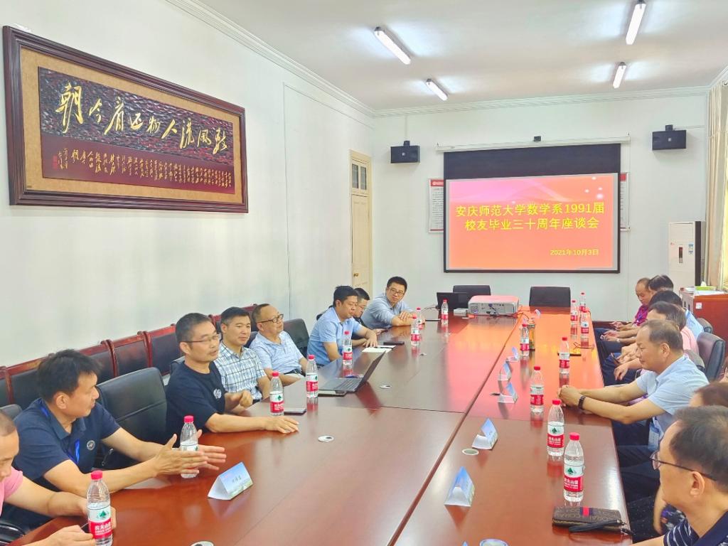 10月3日,数理学院在菱湖校区红楼二楼会议室举行数学系1991届校友毕业三十周年座谈会,教师代表、安庆市政协副主席胡万宝教授,数理学院院长申传胜、副院长张海、党委副书记何骏,数学系主任赵正俊参加会议,座谈会由校友、杨桥中学陈荣国老师主持,安徽省教育招生考试院副院长张连富作为校友代表总结发言。