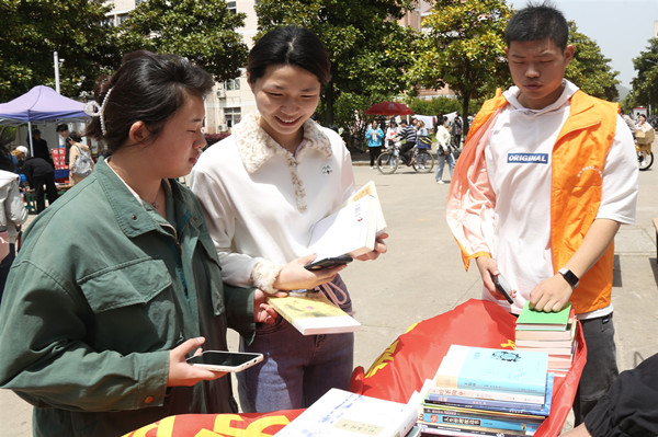 4月17日,威尼斯官网晨曦志愿服务队和暖芽志愿服务队于四大食堂处设点,开展“晨曦暖芽”爱心捐书活动,吸引近千名学生参与,一天共募集课外读物800余本。