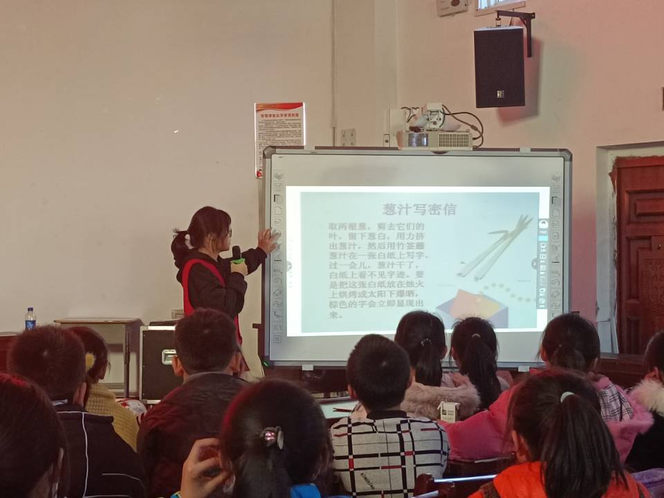 活动开始,2020级化学2班许乐怡作为主讲人,直接切入正题,询问同学们之前是否接触过化学实验,学生们踊跃回答,气氛热烈。而后,主讲人许乐怡为同学们播放化学实验视频,志愿者们对实验进行了介绍及演示。可乐放薄荷糖实验、气球膨胀实验、土豆遇碘变色实验、高锰酸钾红绿灯实验......众多兼具知识性与趣味性的化学实验在课堂上轮番“上演”。这些化学实验令现场的学生十分兴奋,纷纷积极举手提问:“可乐与薄荷糖为什么不可以混合食用?”“土豆和碘发生了什么反应呀?”......面对这些问题,2021级化学4班的志愿者史世伟为学生们讲述了实验的原理,耐心为学生们解惑。
