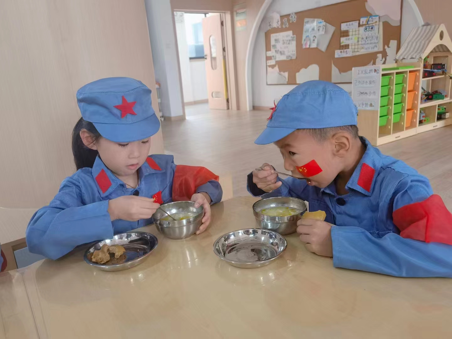 孩子们通过玩红色游戏,品尝忆苦思甜饭,不仅体会了革命先辈的艰苦,同时也培养了孩子不怕困难、坚持不懈的品格,懂得珍惜现在美好的幸福生活。