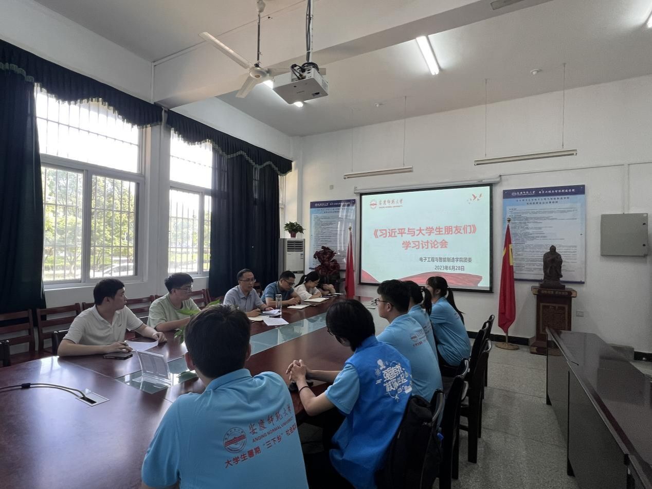 一行行认真书写的会议笔记、一页页图文并茂的PPT、一句句深入浅出的“习言习语”……宣讲团成员于学校稼先楼南会议室101举行《习近平与大学生朋友们》一书学习会。成员们围坐一圈,阅读书中语句,结合三下乡实践,分享心得体会。