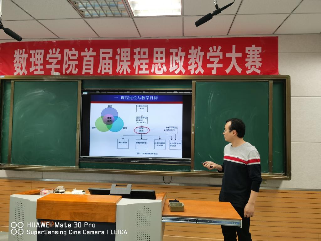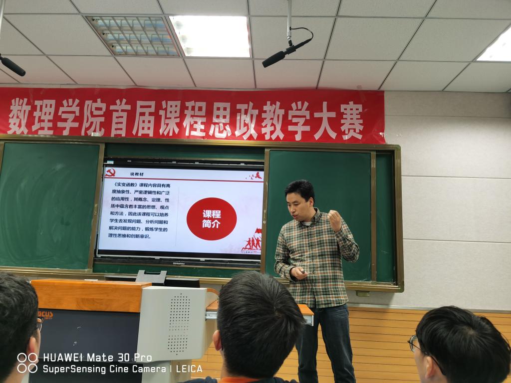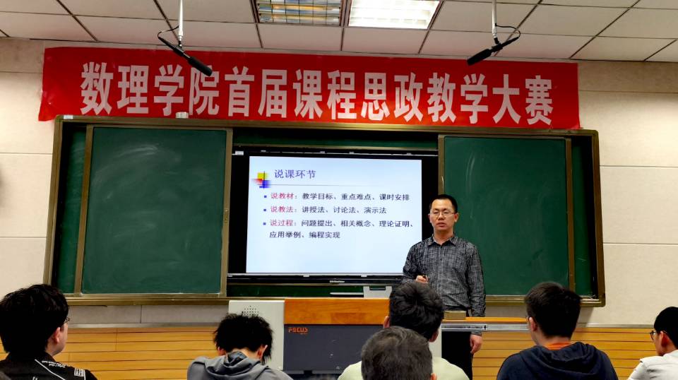 4月30日,数理学院在文津楼105教室举办首届课程思政教学大赛。学院党政领导钟金标、申传胜、张海、何骏,各系(部)主任,以及部分师生参加,学院副院长张海教授主持本次比赛活动。