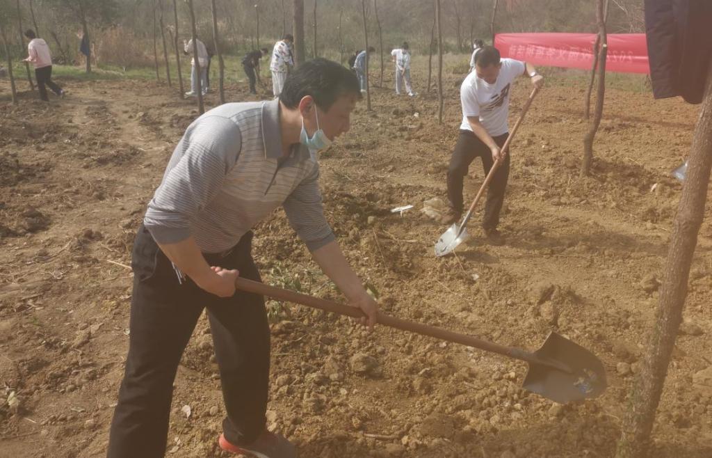 活动中,植树现场一派繁忙有序、热火朝天的景象。大家分工合作,挥锹铲土、扶放树苗、填土夯实等一系列工作配合默契,有条不紊,经过两个小时的紧张劳动,看着百余棵樟树苗迎风挺立,参与活动的党员虽然身上满是泥土,头上冒着汗水,但大家收获到了劳动的喜悦。