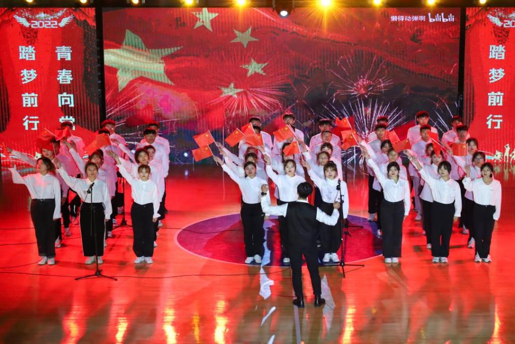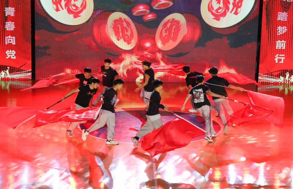 晚会分为“青春向党”和“踏梦前行”两个篇章,涵盖歌曲、舞蹈、小品、幕布剧等14个不同形式的表演,并在此次晚会上对2021年度优秀学生进行表彰。