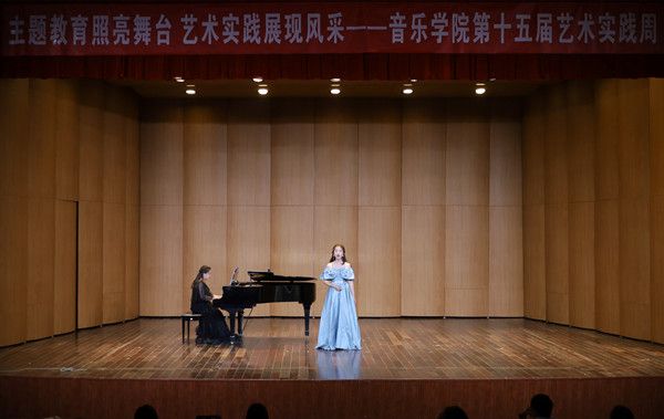 “为什么我的眼里常含泪水?因为我对这土地爱得深沉……”5月23日,伴随着悠扬的歌声,音乐学院第十五届艺术实践周声乐专场演出在音乐厅举行,19名来自音乐学院的学子用深情演绎歌曲。音乐学院党委书记张铭、副院长徐冉、副书记肖之进出席活动,350余名学生到场欣赏演出。