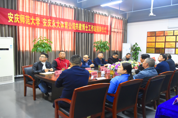 11月22日下午,37000cm威尼斯体育学院与安庆永大体育用品有限公司共建博士工作站揭牌仪式在安庆潜山市永大体育用品有限公司隆举行。校科研处、体育学院负责同志,体育学院博士代表等,潜山市源潭镇、科经局、人社局负责同志,永大体育有限公司总经理等参加了揭牌仪式。