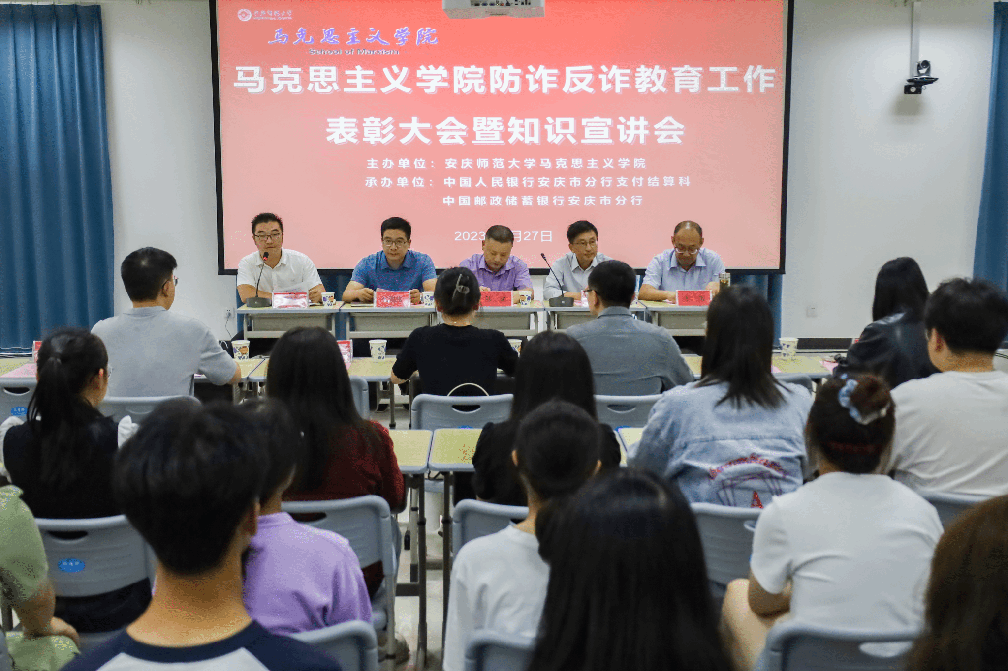 “如今网络犯罪、虚拟犯罪已成为主流,同学们认为哪些群体更容易受骗呢?”9月27日,马克思主义学院在Q119报告厅举行反诈主题报告会暨防诈反诈工作表彰大会,邀请了中国人民银行安庆市分行、邮储银行安庆市分行相关负责人联合开展反电信诈骗、“断卡”行动宣讲会,学院党委副书记邹斌、副院长张俊生出席会议。